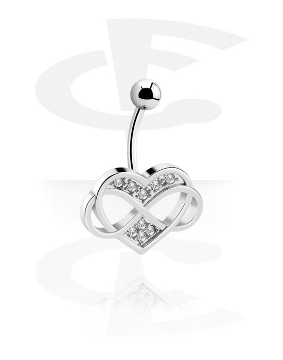 Belly button ring (surgical steel, silver, shiny finish) val vel Szív dizájn és Kristálykövek