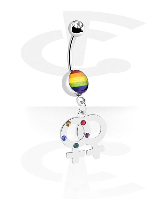 Belly button ring (surgical steel, silver, shiny finish) val vel rainbow colours és Kristálykövek