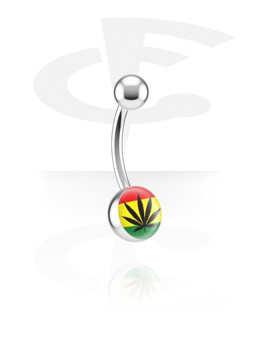 Belly button ring (surgical steel, silver, shiny finish) val vel Marijuana leaf és Jamaican colours
