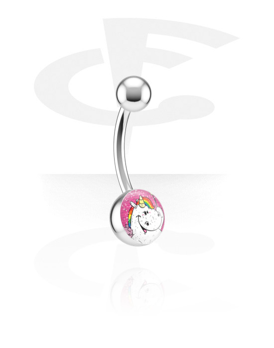 Belly button ring (surgical steel, silver, shiny finish) val vel Testes egyszarvú dizájn