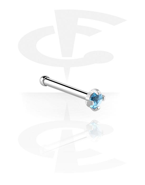 Straight nose stud (surgical steel, silver, shiny finish) val vel Kristálykő