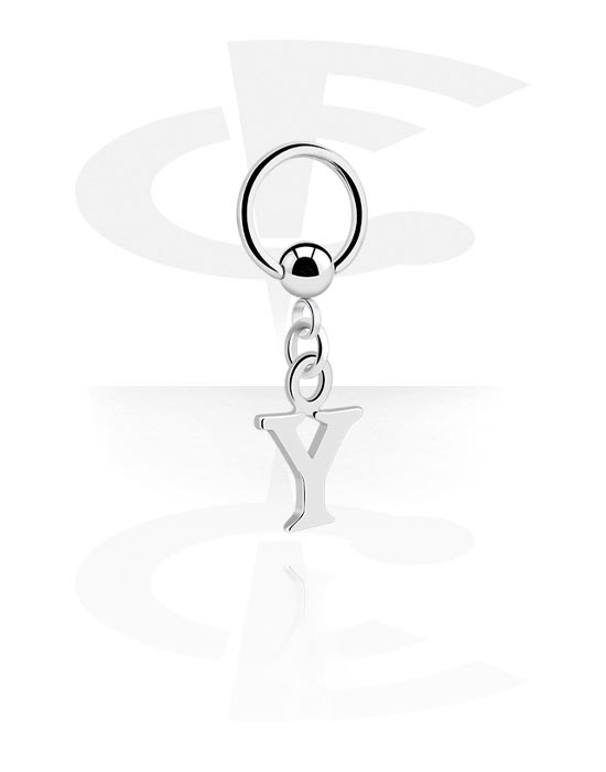 Ball closure ring (surgical steel, silver, shiny finish) val vel charm with letter "Y"