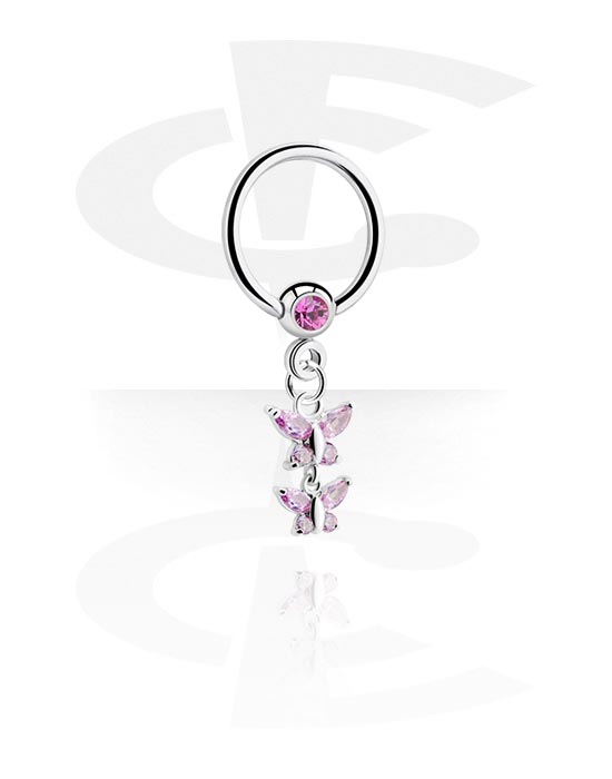 Ball closure ring (surgical steel, silver, shiny finish) val vel Kristálykő és Pillangó dísz