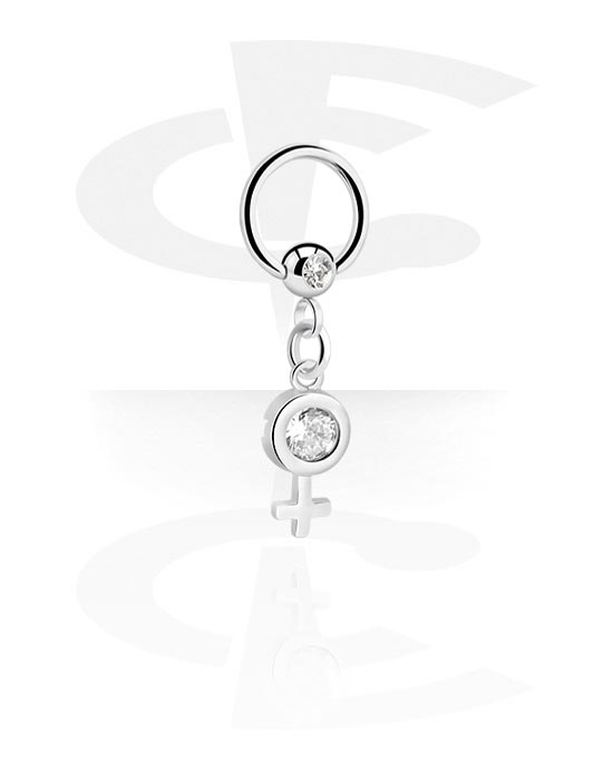 Ball closure ring (surgical steel, silver, shiny finish) val vel Kristálykő és charm with Venus symbol