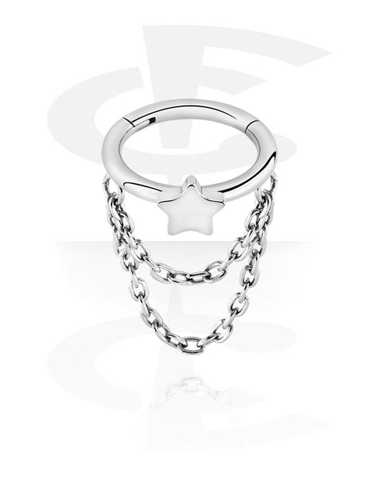 Piercing kattintó (titán, ezüst, fényes felület) val vel csillag kiegészítő és lánc