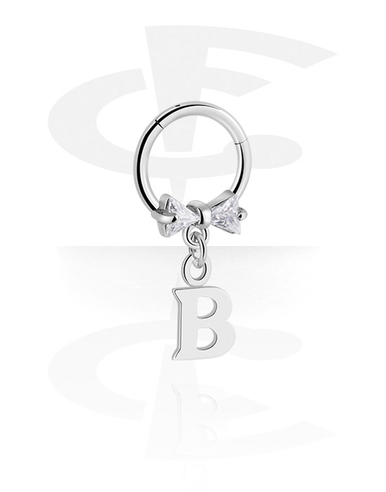 Multi-purpose clicker (surgical steel, silver, shiny finish) val vel íj és charm with letter "B"