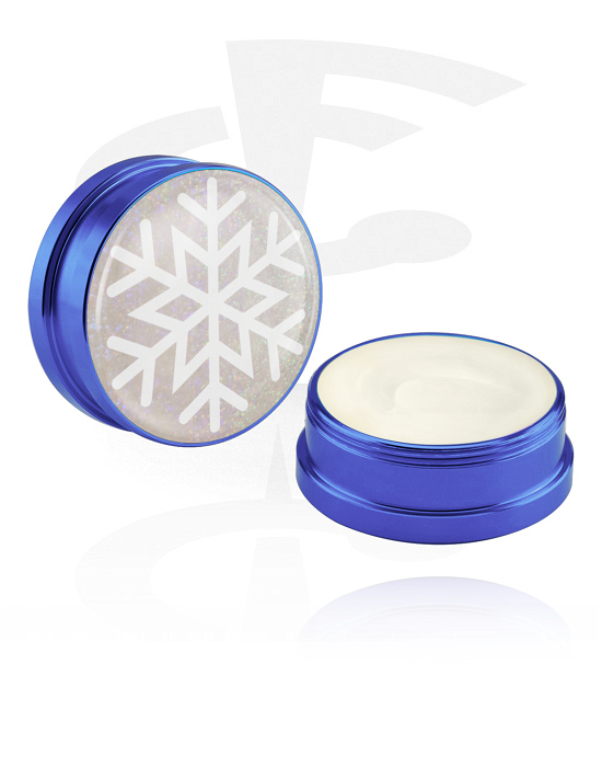 High quality jewelled container in a plug-like look, made of anodised aluminium. Available in various colours and designs. The deodorising conditioning creme takes care of your stretched earlobes and prevents bad smells. After a quick and easy application, the natural ingredients provide optimal skincare and nice smells.