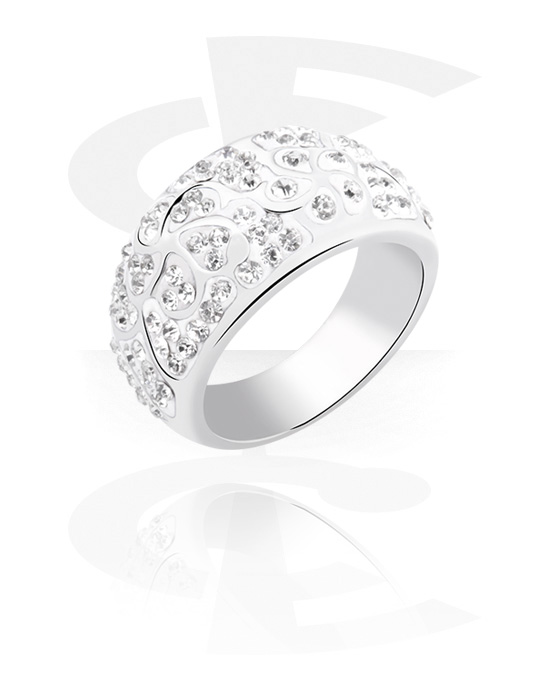 Se vuoi dare nell'occhio, non puoi rinunciare a questo anello in acciaio chirurgico lucido tempestato di brillantini. Perfetto per un look glamour.
