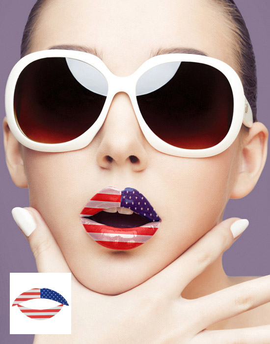 Stelle e strisce per le vostre labbra. Sexy tatuaggio per le labbra - facile da applicare e altrettanto facile da rimuovere. Go for it!