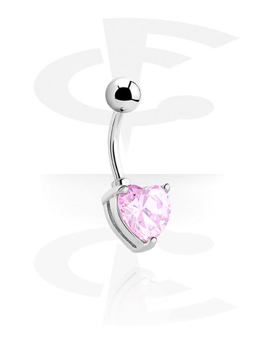 Piercing da ombelico (acciaio chirurgico, argento, finitura lucida) con accessorio a cuore e brillantino