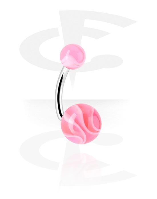 Piercing da ombelico (acciaio chirurgico, argento, finitura lucida) con palline in acrilico
