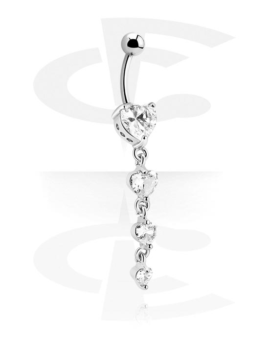 Piercing da ombelico (acciaio chirurgico, argento, finitura lucida) con cristallini