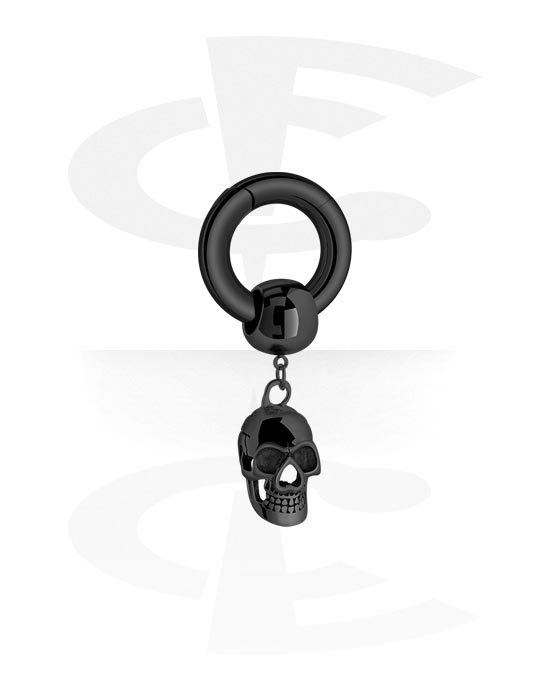 Ear weight (acciaio chirurgico, nero, finitura lucida) con ciondolo con teschi