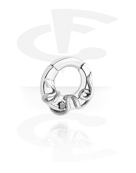 Ear weight (acciaio chirurgico, argento, finitura lucida) con design serpente e brillantino