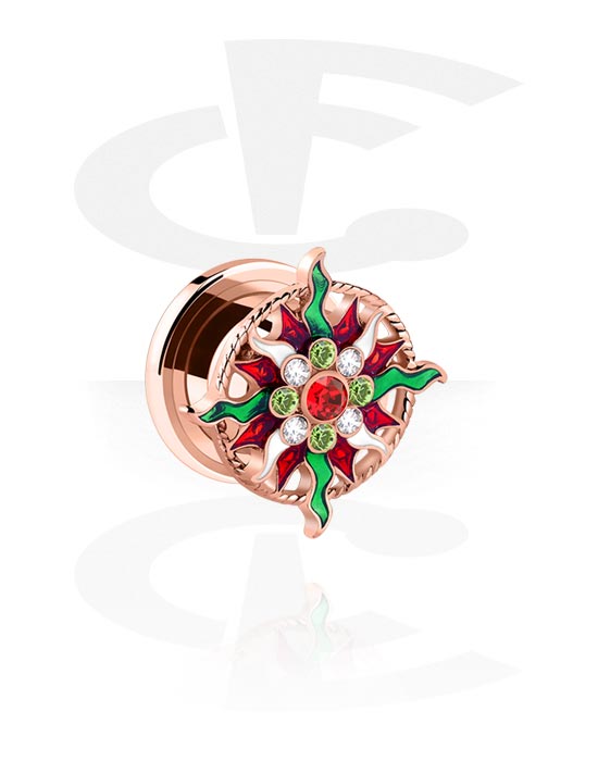 Tunnel con filettatura (acciaio chirurgico, oro rosa, finitura lucida) con motivo stella di natale e cristallini