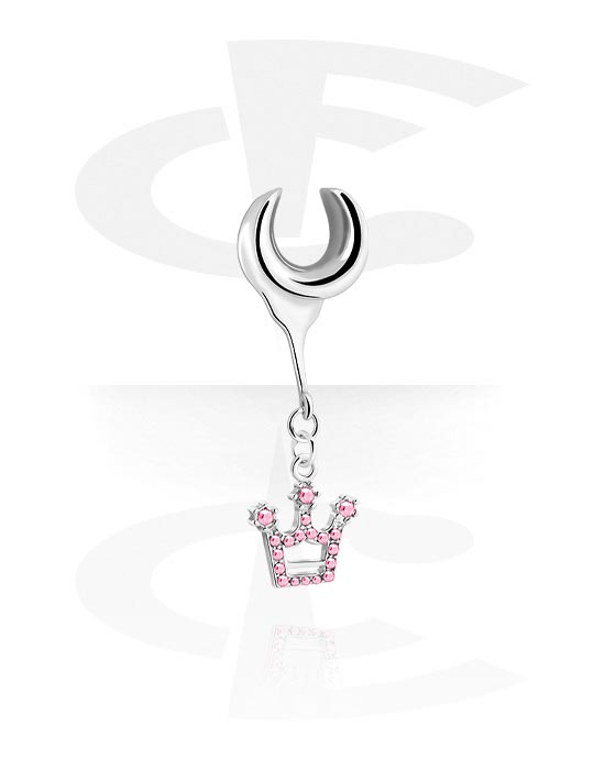 Half Tunnel (acciaio, argento, finitura lucida) con ciondolo con corona e cristallini