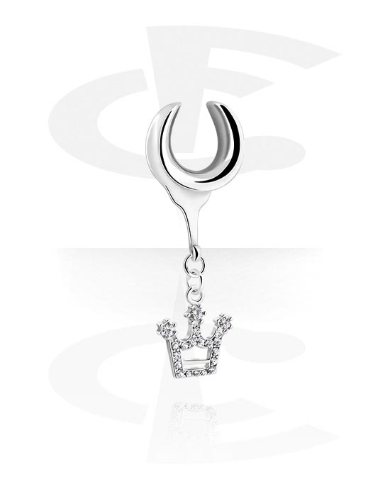Half Tunnel (acciaio, argento, finitura lucida) con ciondolo con corona e cristallini