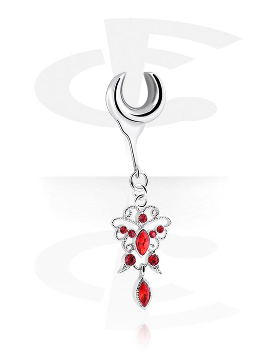 Half tunnel (acciaio chirurgico, argento, finitura lucida) con ciondolo e cristallini