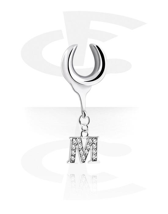 Tunnel con filettatura (acciaio chirurgico, argento) con ciondolo con lettera "m" e cristallini
