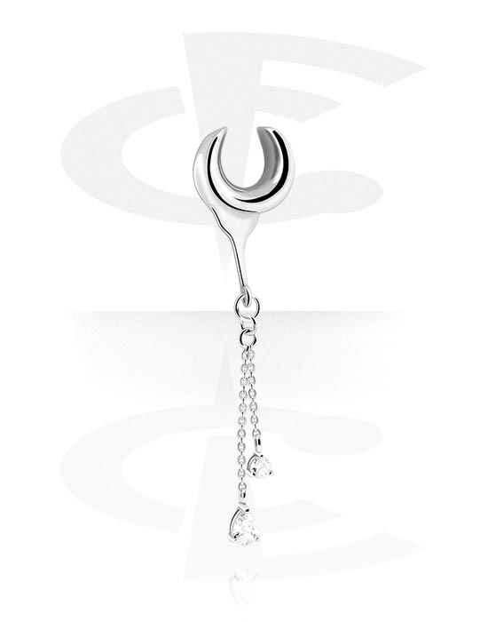 Half tunnel (acciaio chirurgico, argento, finitura lucida) con ciondolo e cristallini