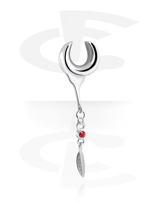 Half tunnel (acciaio chirurgico, argento, finitura lucida) con ciondolo con piume e brillantino