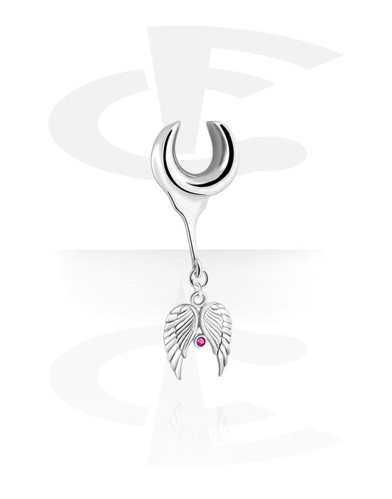 Half Tunnel (acciaio, argento, finitura lucida) con ciondolo con ali e brillantino