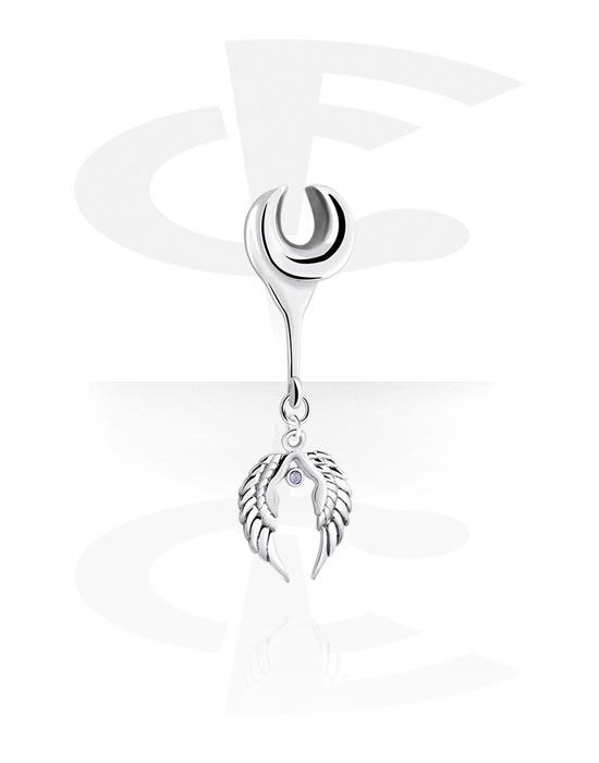 Half Tunnel (acciaio, argento, finitura lucida) con ciondolo con ali e brillantino