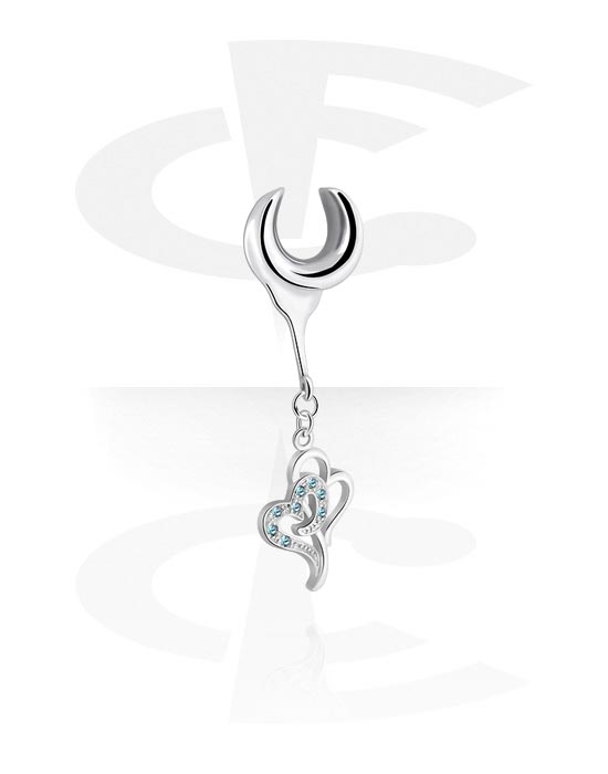 Half Tunnel (acciaio, argento, finitura lucida) con ciondolo a cuore e cristallini