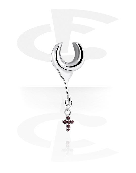 Half Tunnel (acciaio, argento, finitura lucida) con ciondolo con croce e cristallini