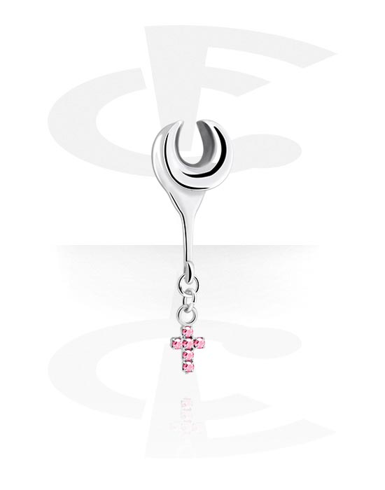 Half Tunnel (acciaio, argento, finitura lucida) con ciondolo con croce e cristallini
