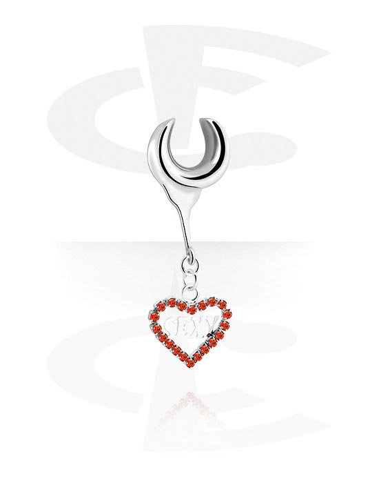 Half Tunnel (acciaio, argento, finitura lucida) con ciondolo a cuore e cristallini