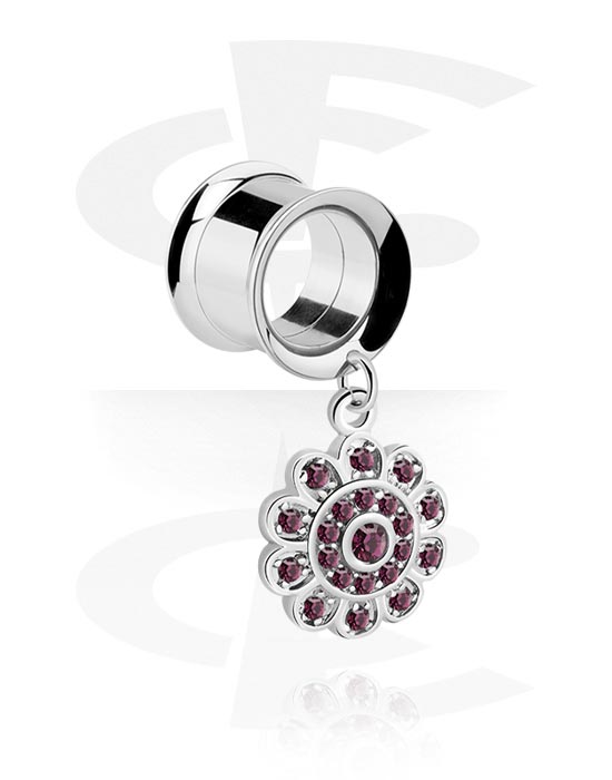 Double flared tunnel (acciaio chirurgico, argento) con ciondolo con fiore e cristallini