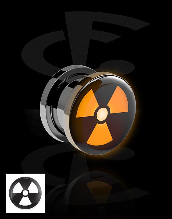 Tunnel (acciaio chirurgico, nero) con accessorio LED e simbolo pericolo radioattività