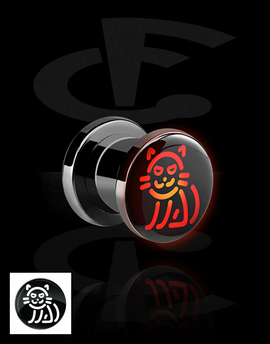 Tunnel con filettatura (acciaio chirurgico, argento) con accessorio LED e design gatto