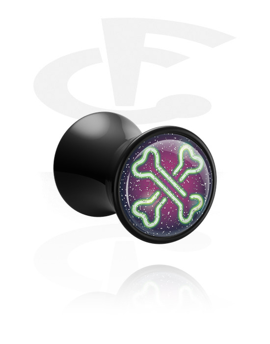 Double flared plug (acrilico, nero) con disegno neon di halloween "ossa incrociate"