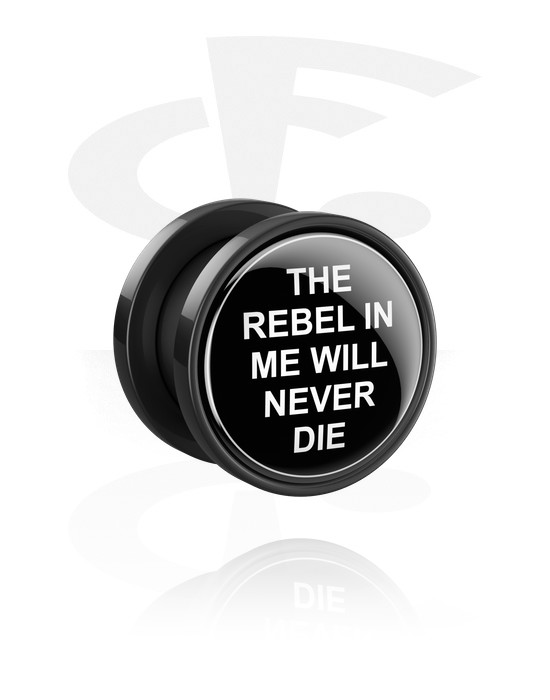 Tunnel con filettatura (acrilico, nero) con scritta "the rebel in me will never die"