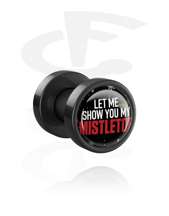 Tunnel con filettatura (acrilico, nero) con scritta "let me show you my mistletoe"