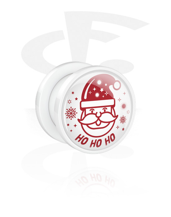 Double flared plug (acrilico bianco) con design babbo natale e scritta "ho ho ho"