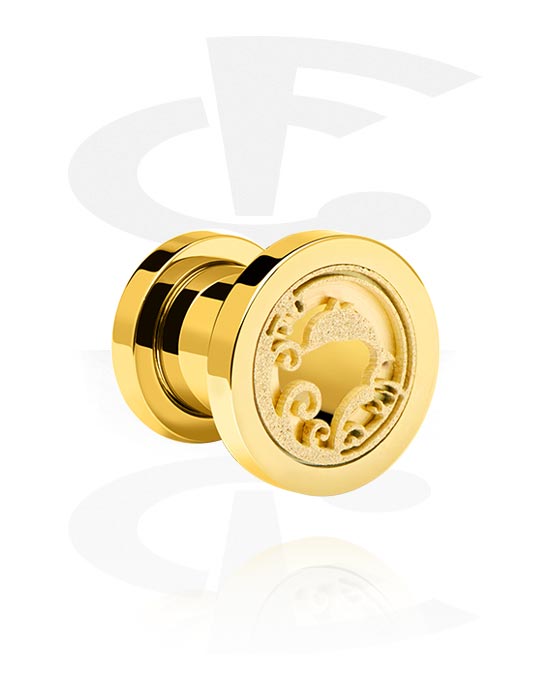 Tunnel con filettatura (acciaio chirurgico, oro, finitura lucida) con design delfino