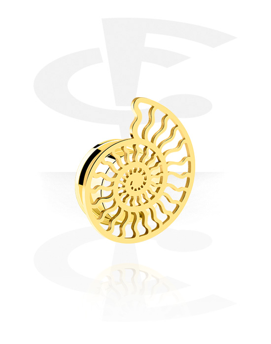 Tunnel con filettatura (acciaio chirurgico, oro, finitura lucida) con design nautilus