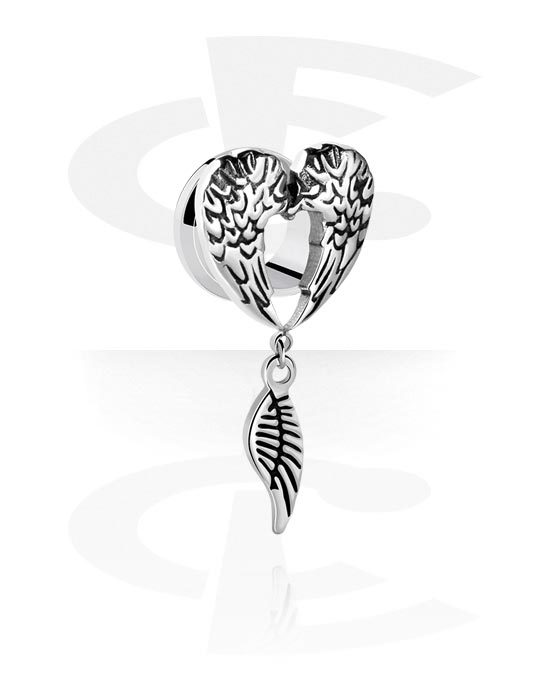 Tunnel con filettatura (acciaio chirurgico, argento) con design a cuore e ciondolo con ali