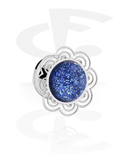 Double flared tunnel (acciaio chirurgico, argento) con motivo a fiore e brillantini