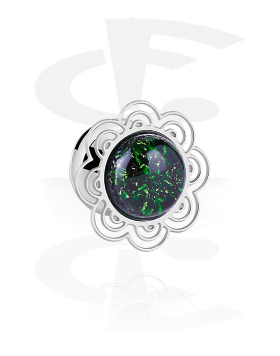 Double flared tunnel (acciaio chirurgico, argento) con motivo a fiore e brillantini