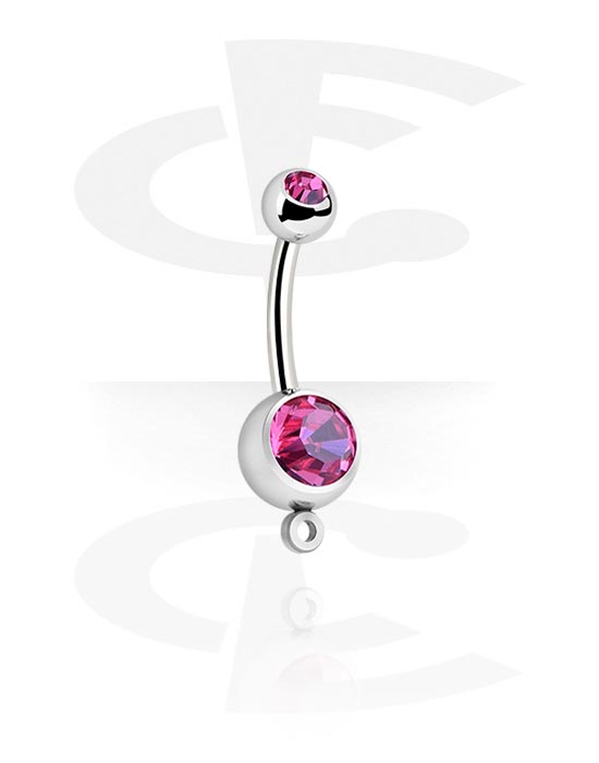 Piercing da ombelico (acciaio chirurgico, argento, finitura lucida) con anellino per accessori e brillantino