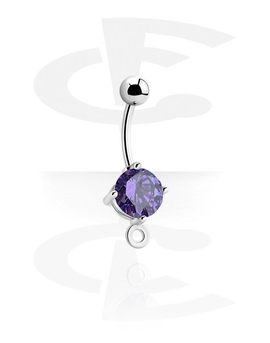 Piercing da ombelico (acciaio chirurgico, argento, finitura lucida) con anellino per accessori e brillantino