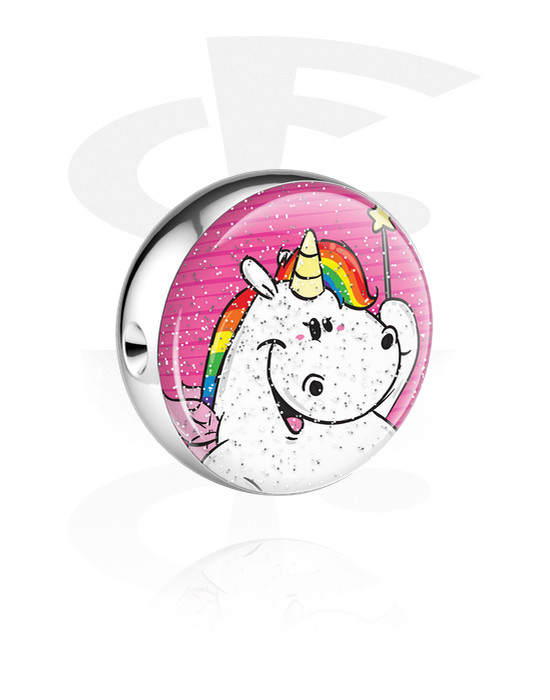 Pallina ball closure ring (acciaio chirurgico, argento, finitura lucida) con design chubby unicorn