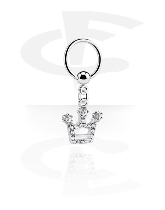 Ball closure ring (acciaio chirurgico, argento, finitura lucida) con ciondolo con corona e cristallini