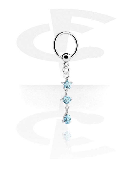 Ball closure ring (acciaio chirurgico, argento, finitura lucida) con ciondolo e cristallini