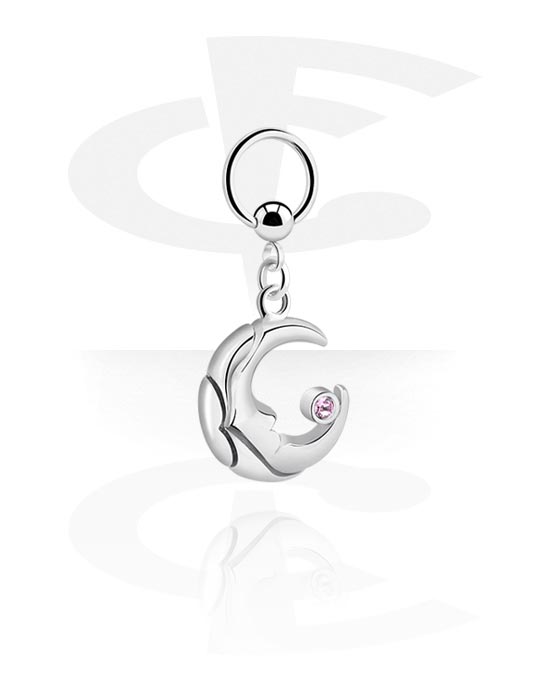Ball closure ring (acciaio chirurgico, argento, finitura lucida) con ciondolo mezzaluna e brillantino