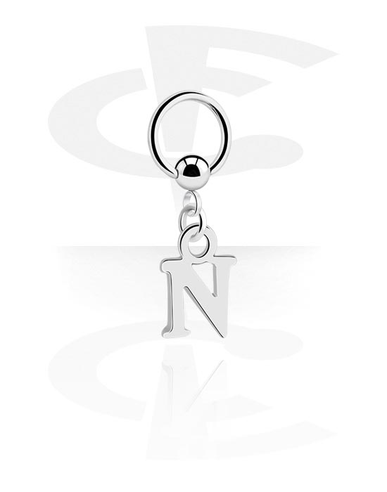 Ball closure ring (acciaio chirurgico, argento, finitura lucida) con ciondolo con lettera "n"